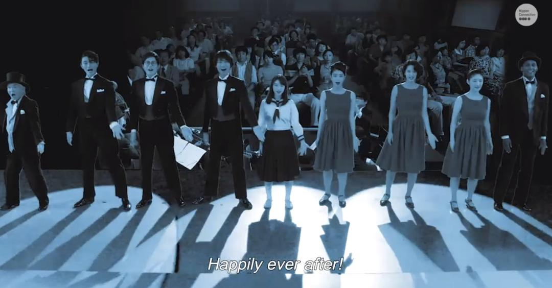 伴随着歌舞段落联结了不同时空,一场几个年轻人与日本战争电影的马拉松之旅被打响——影片的前半程,大林宣彦密集地以不同历史场景编排,像是带观众跳跃式领略了德川家康的幕府时代-珍珠港海战-鸟羽伏见之战-新选组三人-近江屋事件-江户时代-日俄战争这些历史片段,更是将属于西乡隆盛、川岛芳子和宫本武藏等人的历史性时刻进行放大。