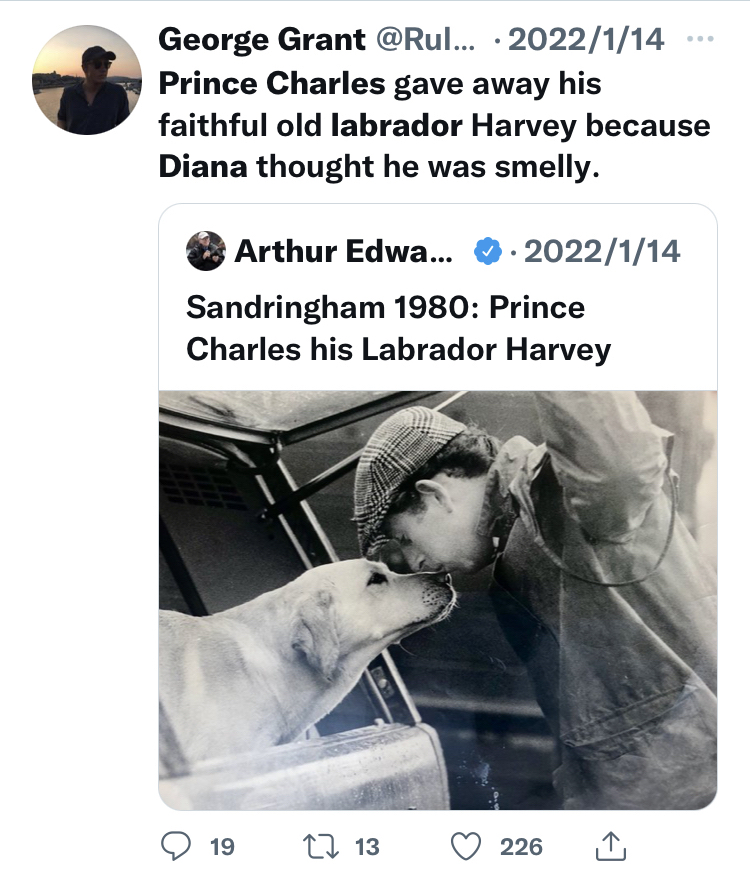 这个也是分居后戴安娜和媒体一起故意制造的narrative. 今天在网上第一次看到一组查尔斯参加儿子学校活动的照片,之前总看到戴在同一天参加同活动的照片,但我从不知道那天查也在场,因为当时的媒体只发行了戴的照片。