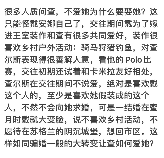 其他:查尔斯对戴安娜感情究竟如何 从以下几点 可以看出查尔斯并非剧里那样冷酷无情(个人觉得就算没有爱情也还是有亲情在的)