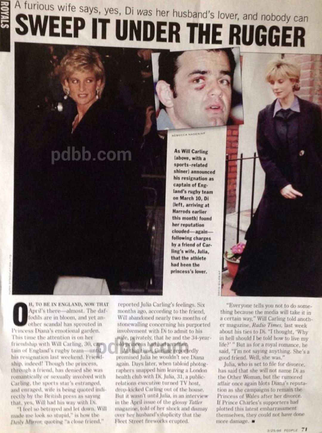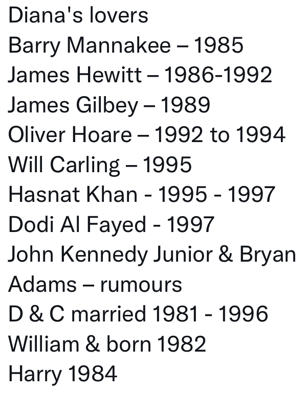 (另一个版本的传记对barry这次事情记载略有不同,但也认为是戴安娜先出的轨)barry被调走没几天,戴安娜就认识了James hewitt,就是红发一直被怀疑是Harry爹的那个,两人关系一直从1986持续到1991年,期间戴安娜还有别的情人。