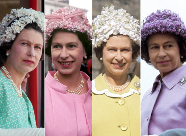 女王穿着粉色套装,头戴坠着25朵风铃草的圆盒帽,象征女王25年的统治。绿色丝绸制作成花梗,黄色丝稠制作成花蕊。