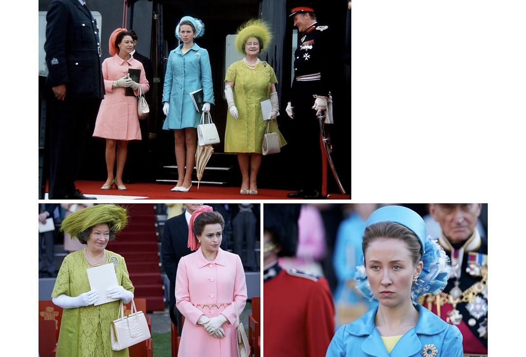 在每一季Crown里都有专门的剧集讲述两姐妹之间的竞争。第三季女王扮演者Olivia Colman约有70-80套衣服;Margaret公主扮演者Helena Bonham Carter约有40套。