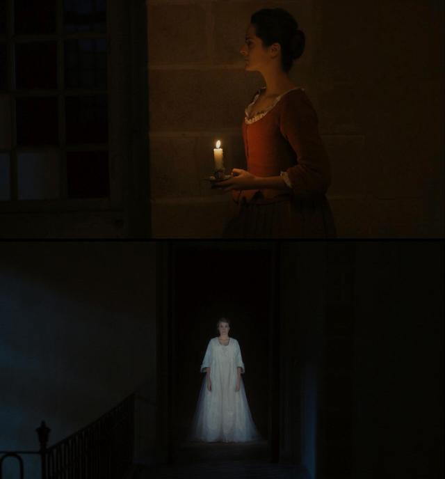 玛丽安的第二次回头是在两人明确彼此爱慕的关系之后,画像即将完成,玛丽安半夜起床倒水,穿着白纱的埃洛伊兹的身影再次出现在她身后,同样稍纵即逝。