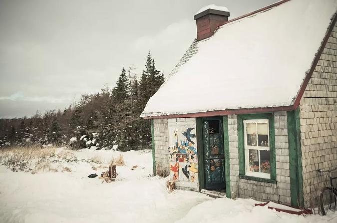 Maud Lewis 的一生,绝非你我标准定义上的美好,患有天生性的类风湿关节炎让她手指僵硬和行动不便,父母早逝,唯一居住的祖居也被哥哥变卖掉,寄住的姨妈也并不那么乐意收留(虽然 Maudie 哥哥有定期支付生活费),早年生下的女儿也被哥哥和姨妈合计卖掉,和目不识丁的丈夫初期相处也并不尽如人意……