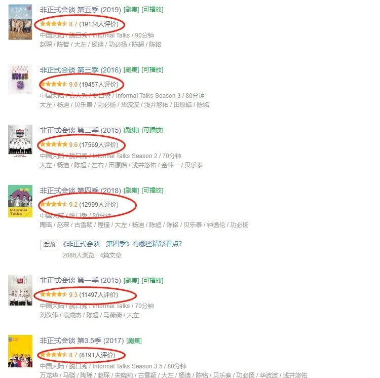 同样是为了打破观众认知,为观众带来新的角度和观点,为观众带来辩证思维的一档节目,从2015年开播以来,豆瓣评分几乎全在9.0+。火遍全网的《奇葩说》没有达到,话题热点《火星情报局》不行,同类节目《世界青年说》播了两季就停播。