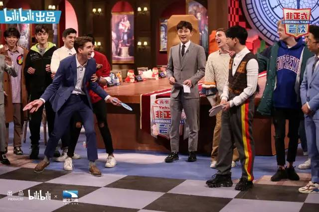 先来说说节目配置,《非正式会谈》的配置由4位中国人组成主席团,11位会中国话的外国人组成文化“代表”。主席团目前固定的班底是大左(挑事的会长担当),杨迪(搞笑的副会长担当),陈铭(散发爱的光芒的总结陈词担当)以及陈超(美女书记官担当)。