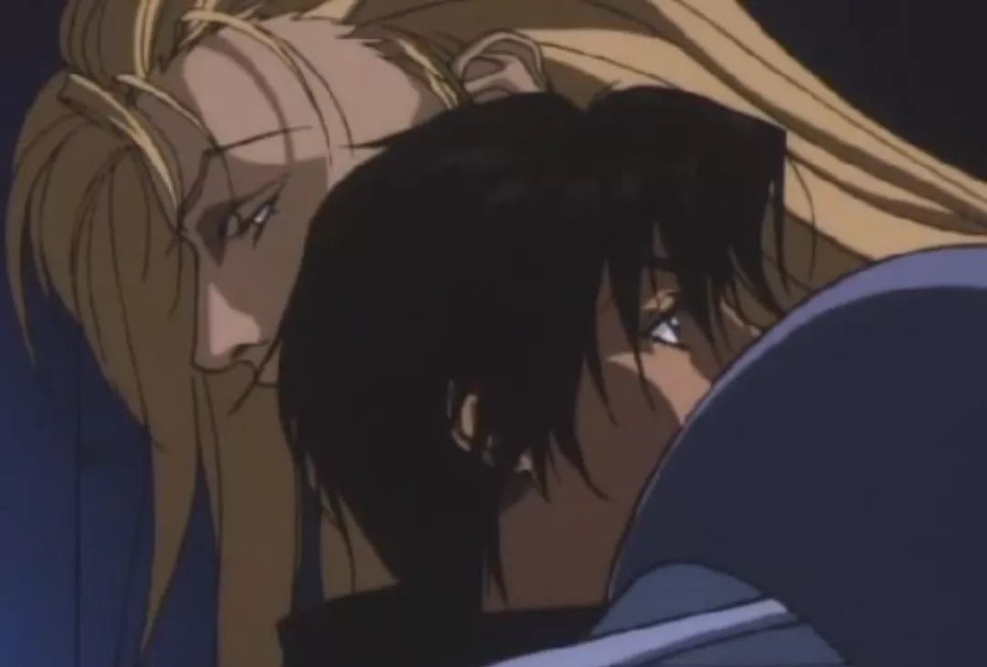 lason,虽然新版ova人物不够美,但是足够威严冰冷,眼睛里永远俯视众生的威严,更贴近小说里的模样,小说里iason永远面不改色,如果不是新版小说扩充了他的心里活动,我们会和riki一样,永远不知道他大脑内对riki如沸腾岩浆般火热的爱,我不认为他那样对待riki是因为人工体不懂得表达爱,