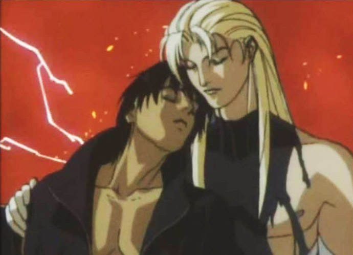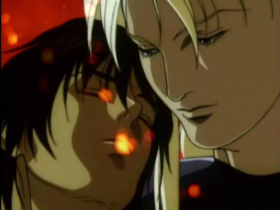 OVA最后结尾时他一个人残坐于火中面无表情,我却为他尝遍了各种五味陈杂:他是伤心吗?因为Riki还是带着Guy走了;他是安心吗?把生机给了Riki,Riki可以自由地生活了……不过,我想其中应该没有后悔吧。