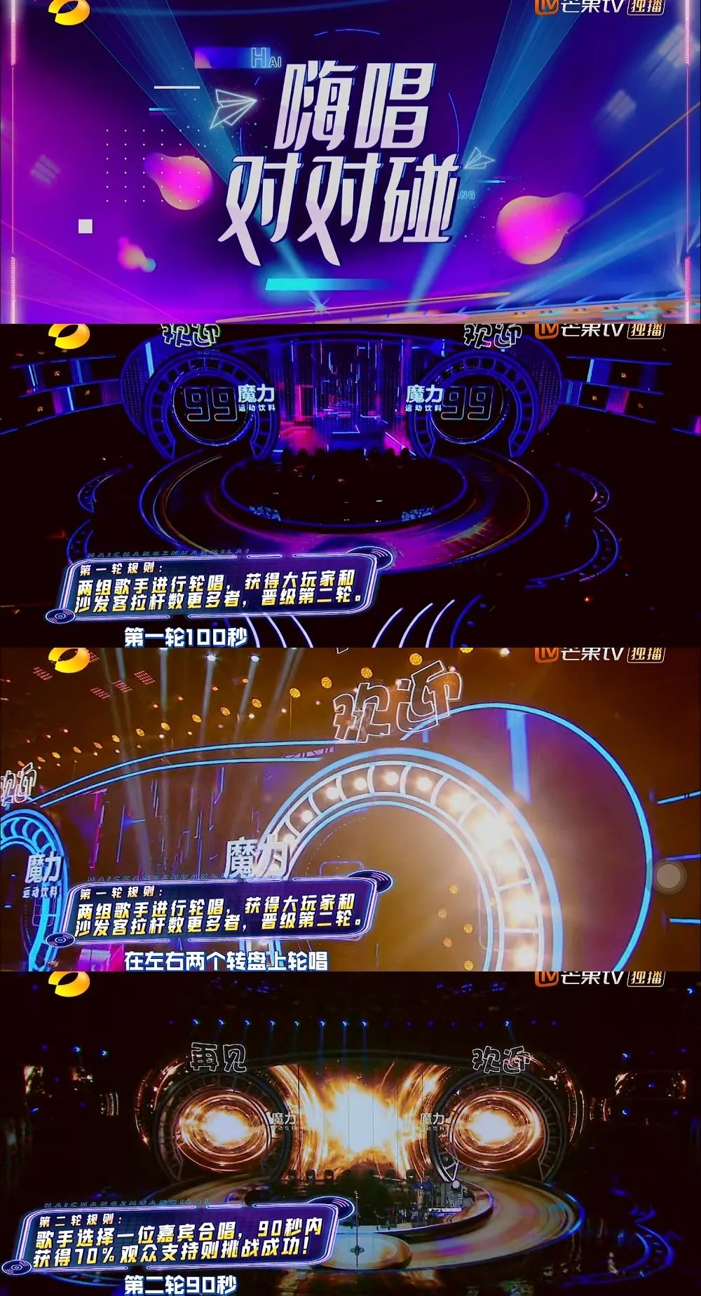 走到第二季,我们依然能窥见两位创作者的思路——《嗨唱转起来》每个嘉宾在两分半钟的时间里唱的都是金曲最高潮、最令听众耳熟能详的部分,这种演唱能让观众在短时间内迅速“嗨”起来,