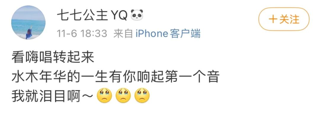 而到了第三期卢庚戌和缪杰以“水木年华”组合登场,有歌迷说,《一生有你》响起第一个音他就泪目了。