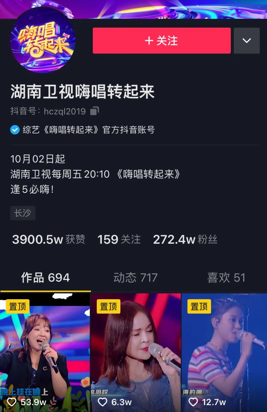 点开节目在抖音开设、目前已拥有269.3万粉丝的账号我们会发现,《嗨唱转起来》累积获赞已经超过3943万次——除6日晚节目中获得点赞88.6万次的《种太阳》外,抖音网红小阿七演唱的《勇气》获赞14万,给所有人带来“回忆杀”的高胜美则获赞近7万。