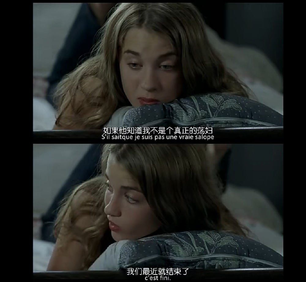 Floriane把自己的嘴唇洗干净,去找外面的男孩了,她依旧理所当然地使唤Maire,告诉她,如果对方是个混蛋就去把自己救出来。她完全没有意识到自己的行为给Marie造成了多大的打击,她自然而然地认为这样接下去可以一如既往了。而Marie站在原地是那种希望被最终无情打碎的茫然,心情从最高点掉到最低点,觉得自己可笑可悲,失望过那么多次还会抱不切实际的幻想,那几秒时还隐约奢望对方这样做也是因为喜欢自己,事实原来,从来……对方都没有把自己的感情真正当回事。