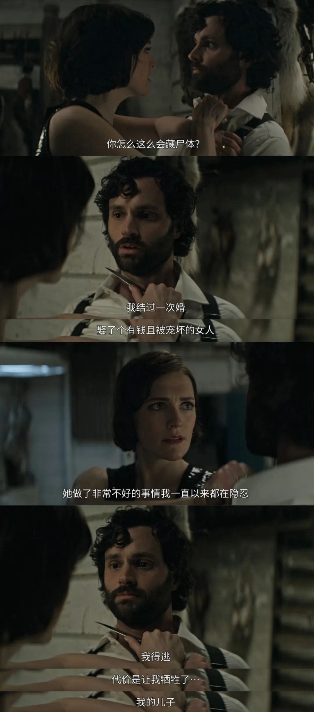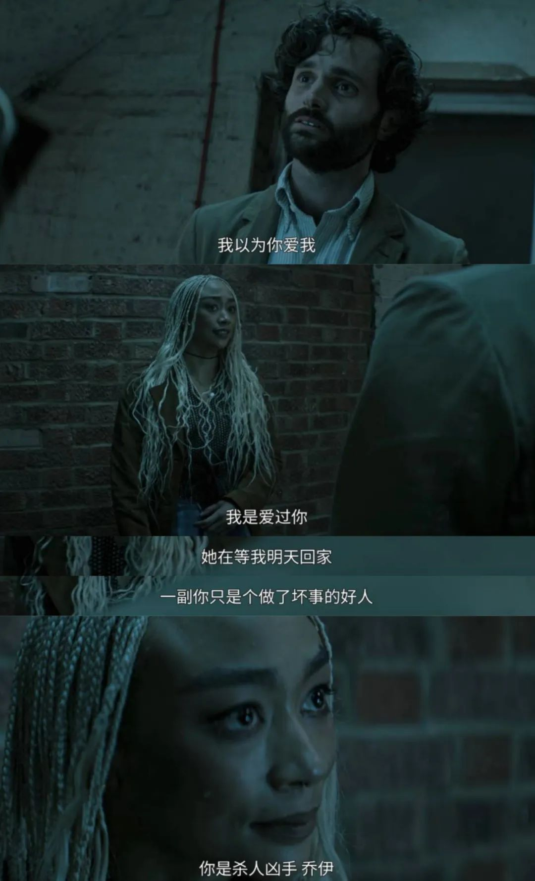 前面三季都有一个角色象征着弱者,像第一季的Paco母子,第二季的Ellie姐妹,还有第三季的Marienne母女,这个角色起到的作用是激发了Joe的保护欲,连续三季Joe都会为了保护这个角色或者帮助这个勾勾,他会替他们杀掉那危害他们的人,我一直把这个角色设置称之为这部剧的一道光,一道照亮Joe也照亮这部剧的光,因为它代表了Joe性格底色里仅有的一丝良善,但是来到这一季,这道光,似乎也消失了,这一丝的人性的良善,也彻底地消逝了。