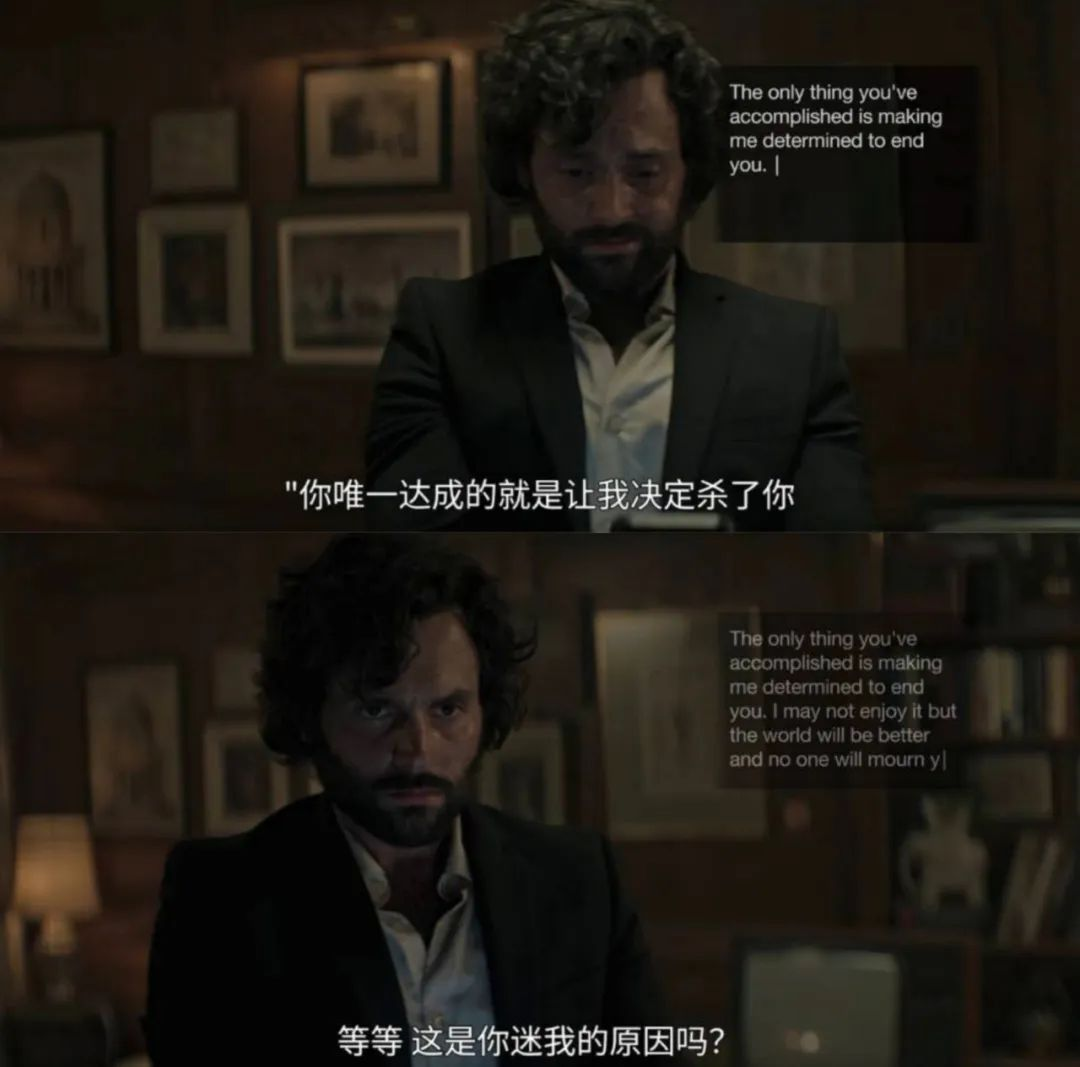 我不喜欢这一季,几乎没什么感觉,一个是杀业太重一路往前杀,另一个就是精神分裂的桥段确实已经严重审美疲劳了。我其实怀念的是第一季那个念念叨叨,尚未精神分裂,有点原生家庭悲剧困住但是又还心带少许良善的Joe,而不是现在这个精神分裂后暴跌且嗜杀的西装暴徒。