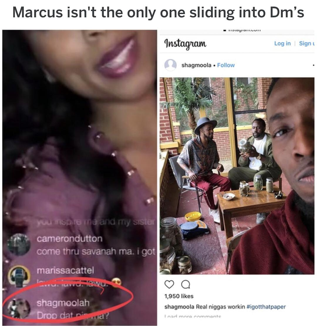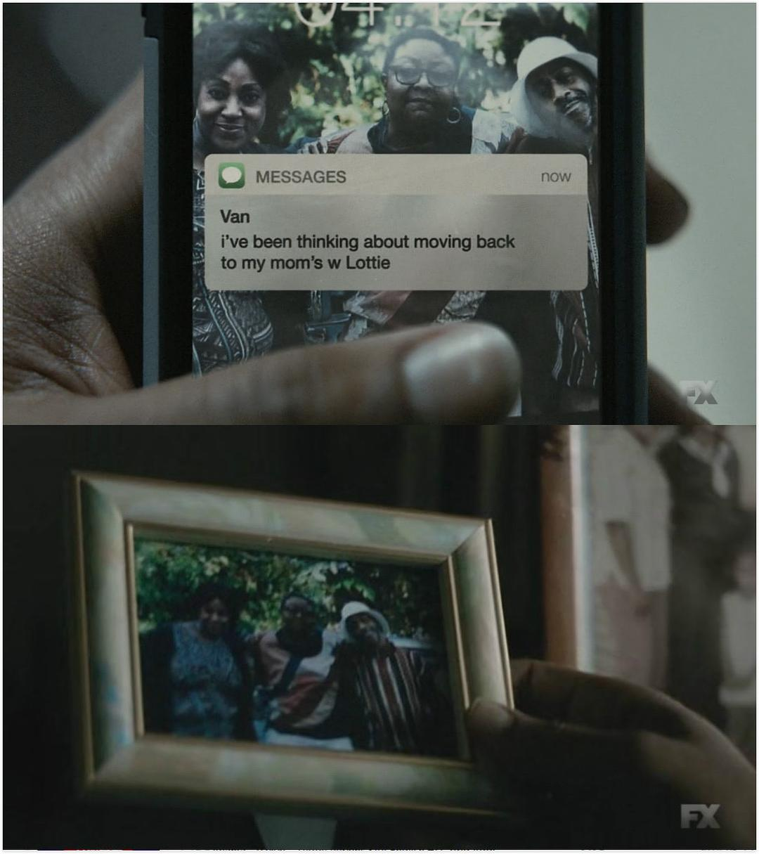 5 Paperboi发短信问Darius死了没,Darius手机屏保来自IG艺术家Justin Richburg在Black History Month创作的一幅作品:画的是奥巴马夫妇、马丁·路德·金、马尔科姆·X和艾弗森掷筛子赌钱,泰森、凯文·哈特、奥普拉、蕾哈娜、还有《训练日》里的丹泽尔·华盛顿在一旁围观,衣服后面是Charlamagne Tha God,门外是威尔·史密斯、2Pac和黑豹。这幅画的灵感来自Gucci Mane和Migos巡演时一起在大巴中间赌钱的一张照片。Richburg这个作品很多人喜欢的同时,也被一些人骂这是hood trash(带头的就是Charlamagne),很明显Donald Glover非常欣赏。Richburg已经知道了这个消息,在IG上表达了兴奋之情。