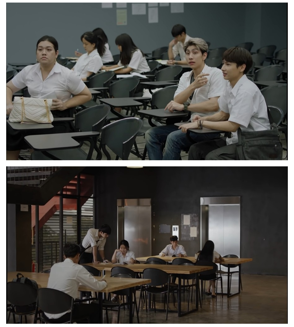 第一集的色调是一个我认为有意思的点,作为一个现实主义题材,这部剧我们应该很少会再见到泰国普遍校园剧的滤镜,代替校园滤镜出现的是悬疑片中的迷雾。正片一开始就是灰蓝的色调,white的自述,在俄罗斯的房间,包括回到泰国后的家里,都是雾蒙蒙的。
