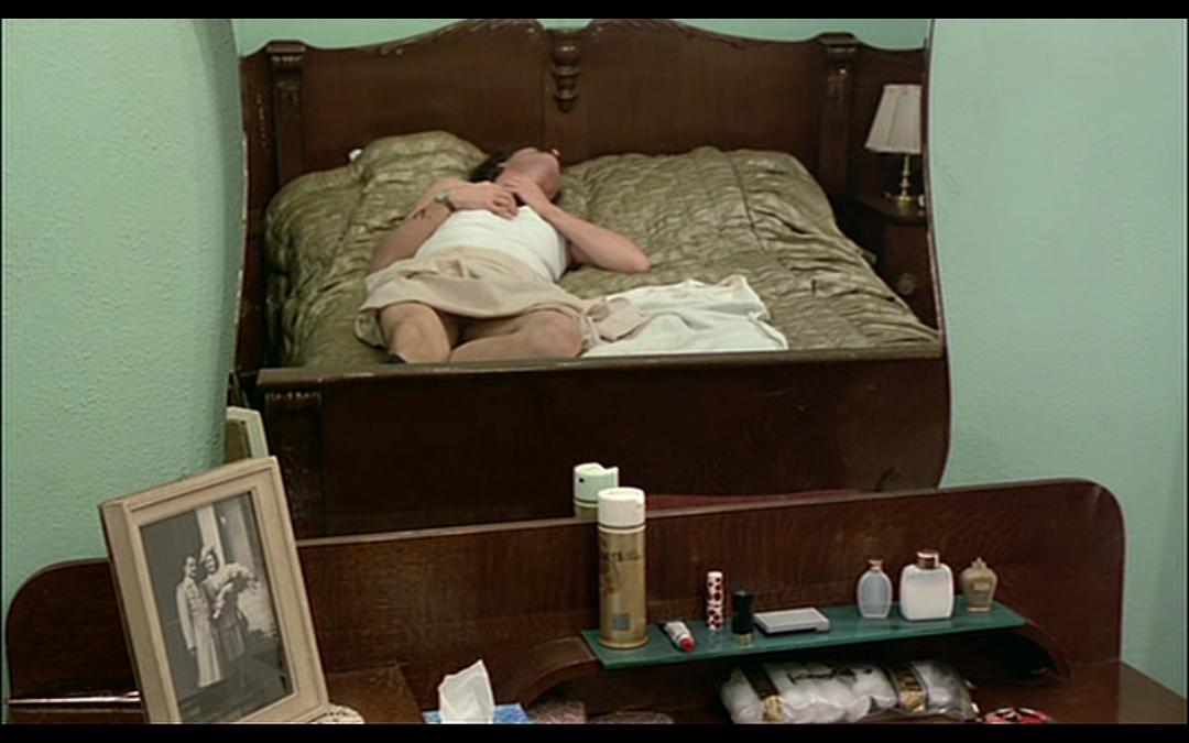 而《让娜·迪尔曼》绝非一篇社会面向的机械般的论文,它最为显著的是其电影性,是香特曼从女性视角出发,将电影作为一门艺术,为之贡献出的新美学。从美国回来的香特尔更加注重电影的结构性,让娜一步步失序到失控,其节奏犹如乐谱的美感;对空间和时间的创造性处理,更是突破了电影的边界,她将长镜头对准日常的劳作,通过“凝视”表现观众和电影中主体的共同“在场”,日常劳作的复杂性和意义得以在这空间和时间内慢慢呈现;环境声音效果的特殊放大处理是一种心理外化的表现方式;顶光的非常规布光,压缩了景深,人物不再具有感染力,疏离的效果也体现在非日常的对话当中;更不要说反传统,反剧情,反人物大胆反叛,无啻于对当时的电影语言和女性形象的一次革命性的解构。她所带来的全新美学启发了后续一系列大师之作,格斯·范·桑特的《大象》,蔡明亮的《爱情万岁》,阿彼察邦的《恋爱症候群》等等。