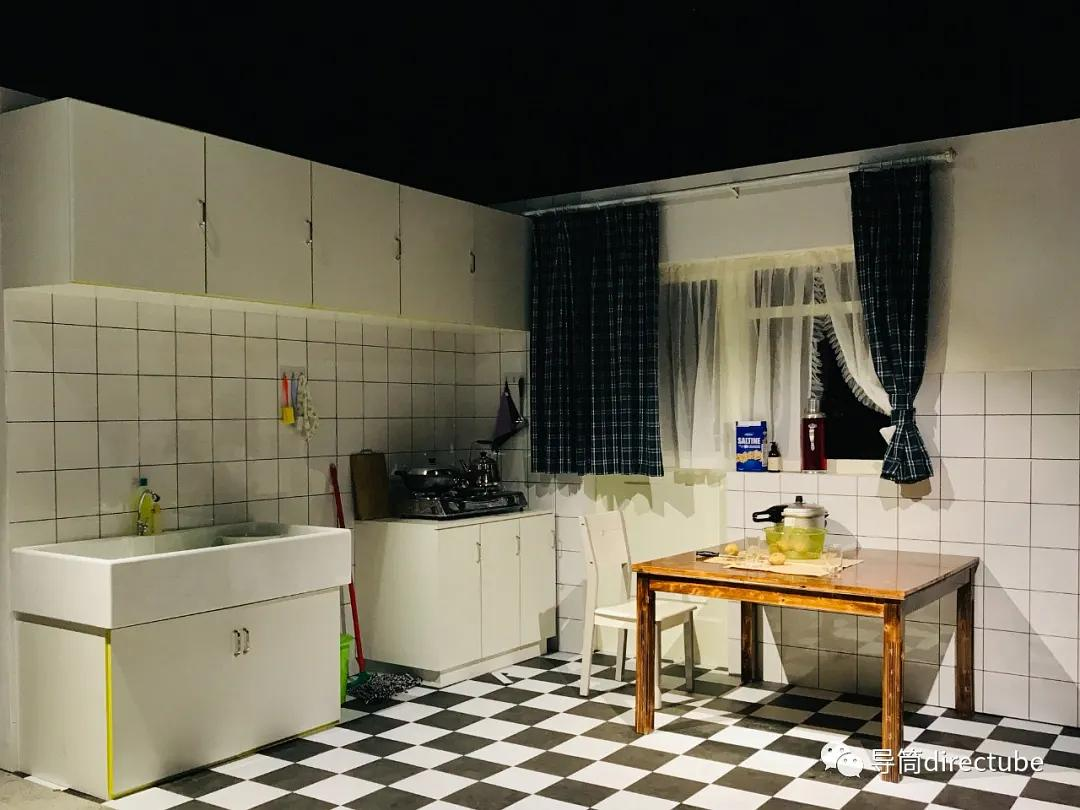 厨房的地上铺着格子瓷砖,墙上贴着黄色瓷砖,挂着擦手巾和洗碗巾。阿克曼带着剧组成员,按照让娜·迪尔曼的习惯,归置了灶台和洗碗槽,以及上下橱柜里的东西。在阳台的门上,有着紫色绿色相间的帘子,和白色的花窗帘,在窗台边,放着盐盒和热水瓶。在门的左边,还有我们没看见的烤箱和冰箱。