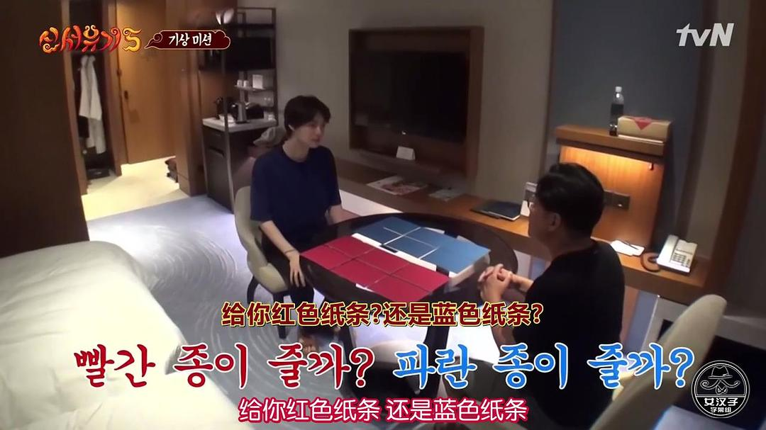 11.7 西游记4 他们在香港最后一天 早上玩了红色 蓝色纸的游戏 结果没公布答案 谁是人气王 可以吃早餐 然后直接晚上姜虎东来猜拉面的品牌了 哇塞 果然是6包达人 全猜对了 还一口气把5种方便面都吃完了 大胃王 好厉害