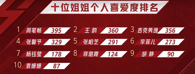 袁姗姗自始至终都在垫底,人气也在垫底,这个是节目组播出来的石锤吧?虽然我也不讨厌她,但是她个人风格真的没有对吧?放在节目组里是完全没有任何加成的,这种人保留下来了。