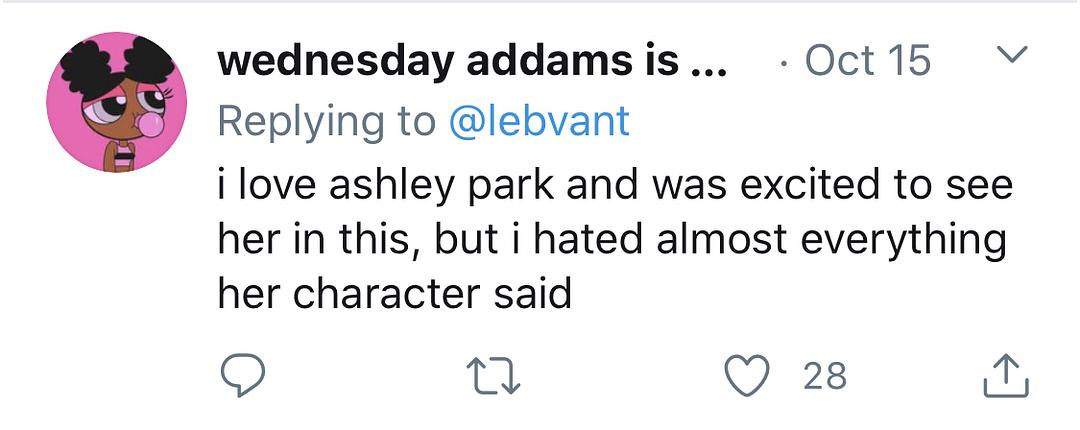 当然,我对演员本人没有意见。Ashley Park从小在美国长大,在接这部戏之前没说过普通话,也没怎么去过中国,自然浑身上下都是美式细胞。只是在她塑造的Mandy身上,我几乎看不到任何中国元素,除了一张亚裔的面孔(Ashley Park有韩国血统,Park应该是“朴”姓)。
