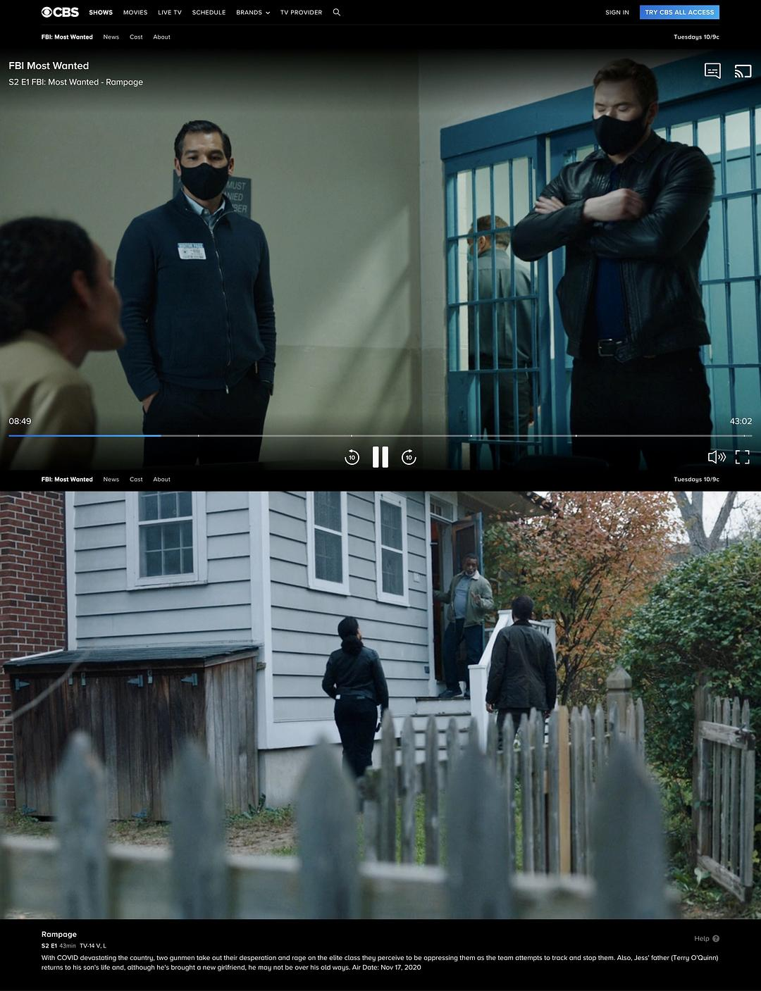 新季犯罪剧里,Most Wanted S2E1算是糅合了最多的pandemic细节的一集,比如探监时一屋子人戴口罩,调查时也在户外保持社交距离,比如嫌犯1因父亲死于Covid而被送往寄养机构又被cabinet fever引发情绪问题,嫌犯2因Covid陷入经济绝境并被房东非法驱赶导致仇视富人而主导了random shooting,都与pandemic息息相关 —— 但剧情就相对平淡了,Most Wanted的氛围感和角色塑造,一向比案件本身要精致得多。