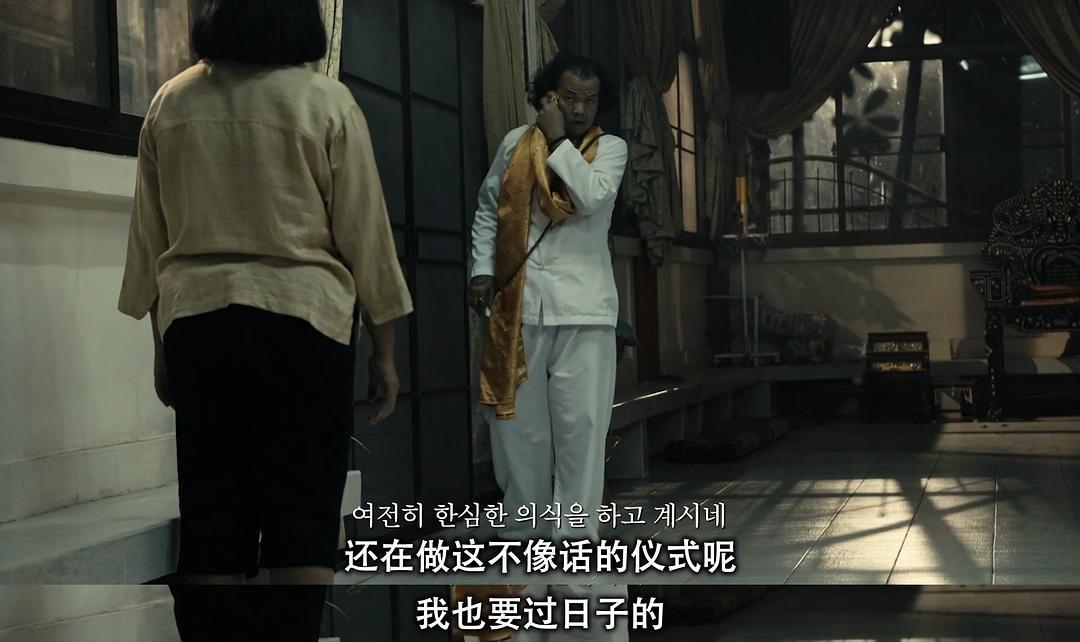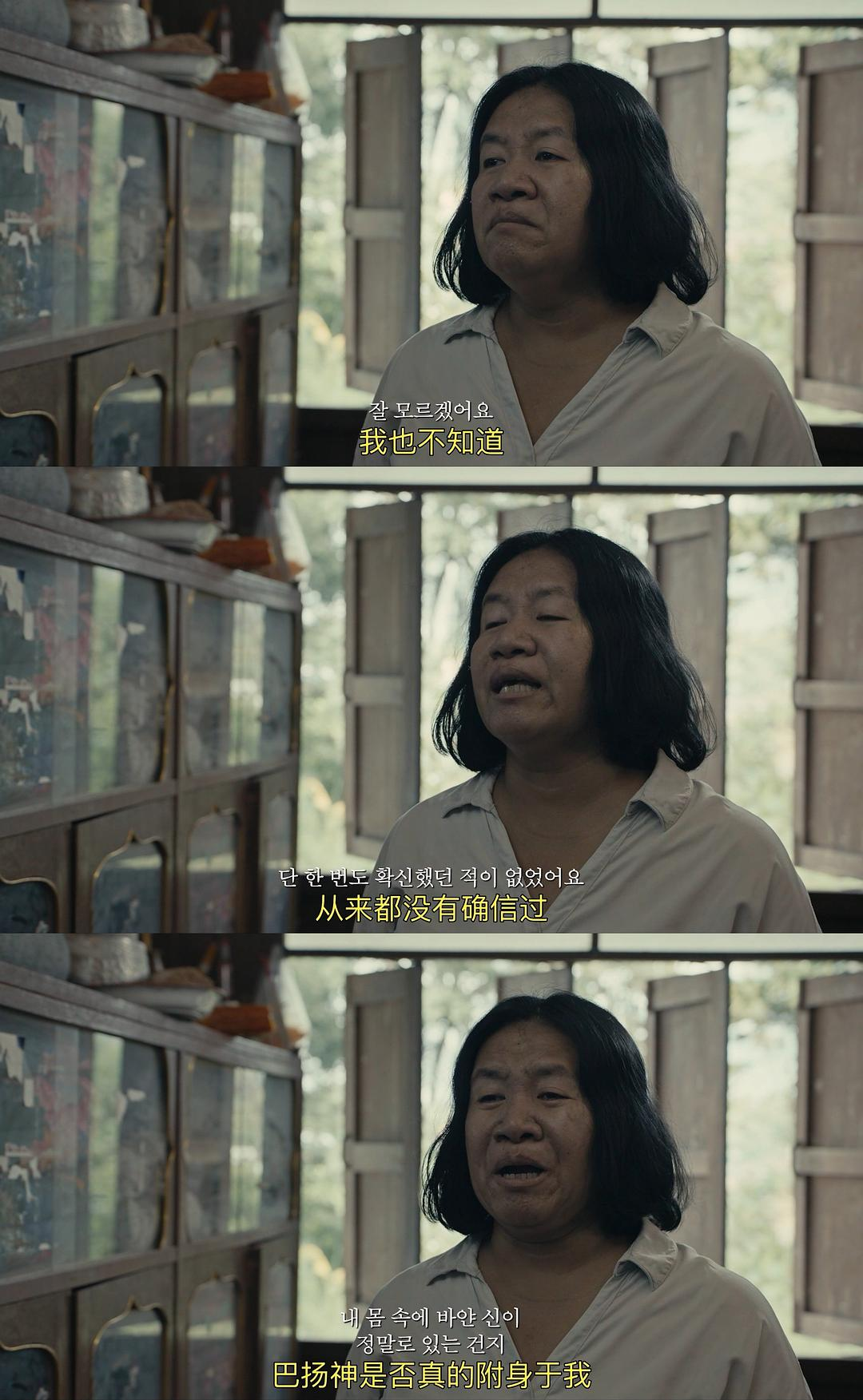 这么拉风的灵媒在正常驱魔电影里通常都是最后主持仪式、揭开真相的角色,就算死也一般会死得轰轰烈烈、死得其所,然后挂掉前解释一番巴扬神和其他恶灵的真相。但这部电影里的关键奥秘什么也没说,比如巴扬神的故事、敏的家族秘史、恶灵的来源……什么都没说清楚,仅靠观众自己通过捕风捉影的去脑补剧情的全貌。