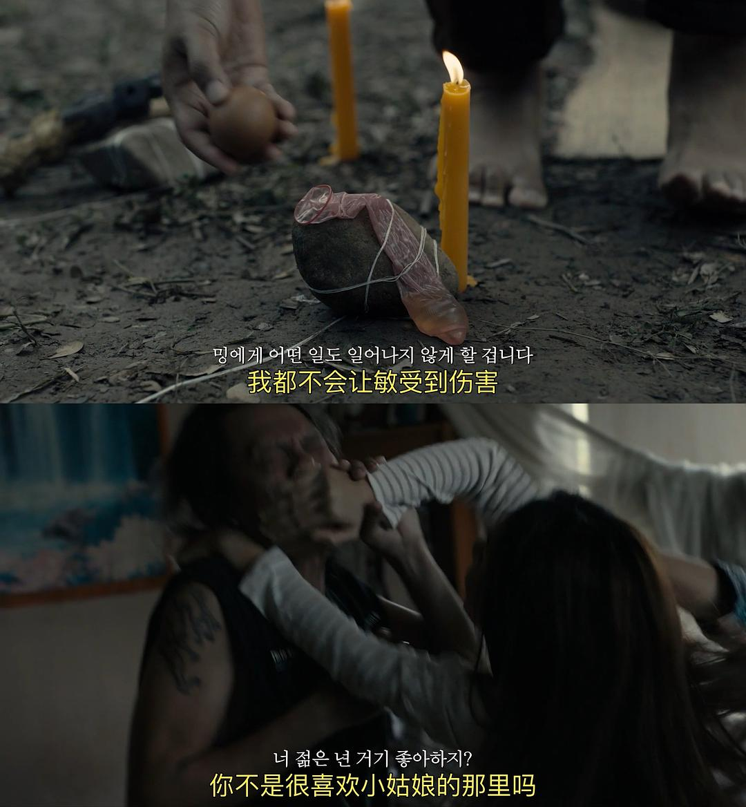 野凡 少女被邪祟附体,神像被斩落头颅。这是一部有钱版的《中邪》,不禁又要对后者惋惜再三。故事既是来源于罗泓轸,那么大抵会以不完满的结局结束,令人心头压着一口气,无处宣泄。与《南巫》一样,同是东南亚村落有关下降头的故事。本片以伪纪录片的方式试图营造真实感,而后者则是通过事先告知观众故事源自作者童年记忆这一方式奠定现实感的基础。与后者一样,本片也给到了观众许多观察性的镜头,让观众自主融入到温吞的叙事节奏中,去发现摊开在画面中不那么起眼的线索。