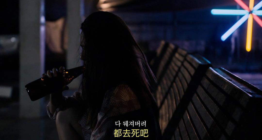 敏在开头突然大骂说有人骂她是妓女,以及敏在车上突然打关心她的婆婆,以及她醉酒后疯言疯语。