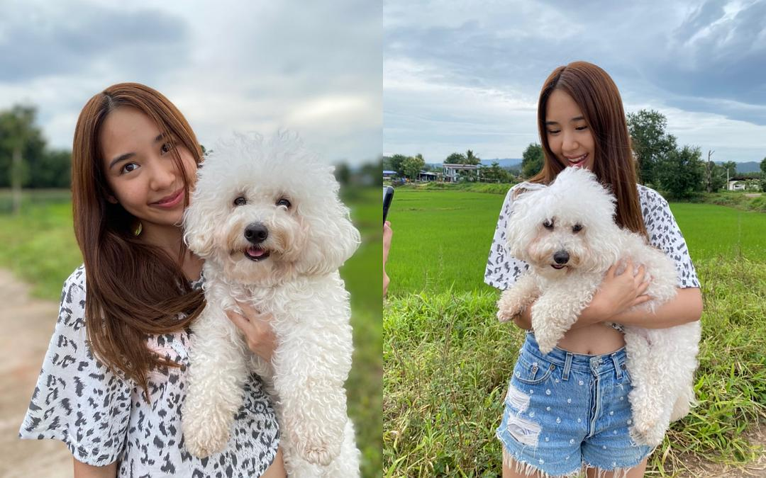 片方还公布了女主和狗狗的照片,并表示他们在泰国现在很健康,过得也很开心。