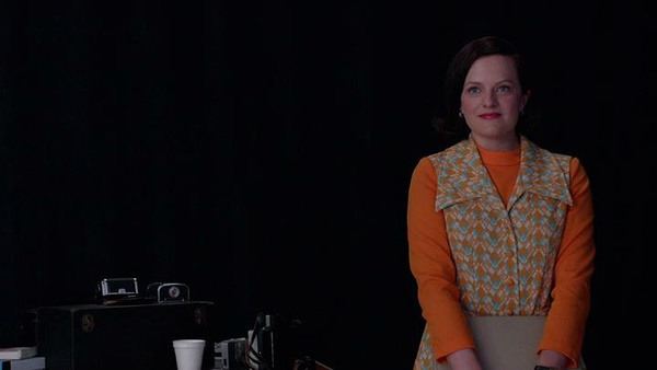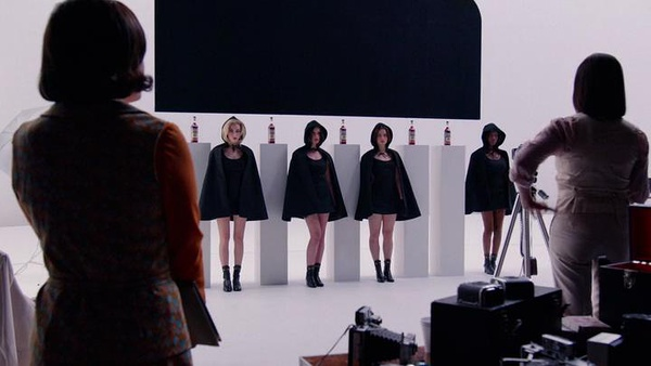 该剧中每一位女性角色都代表着不同层级的独立性,正如Mattew Weiner自己所评价道的“Megan is born to be independent, while Peggy is grown to find out she is independent.”此时的Peggy已然对自己有了较为清晰的定位,能和自己的野心和睦共处,更好地驾驭了自己的领导地位。上集中,她教育下属“If you want to get promotion, stop acting like secretary”正是自己升职的写照,而这集中,她面对强势的Pima,也能气淡神闲地说出“only my opinion matters”。 (P.S. 拍摄广告现场的色彩运用构图非常出彩)