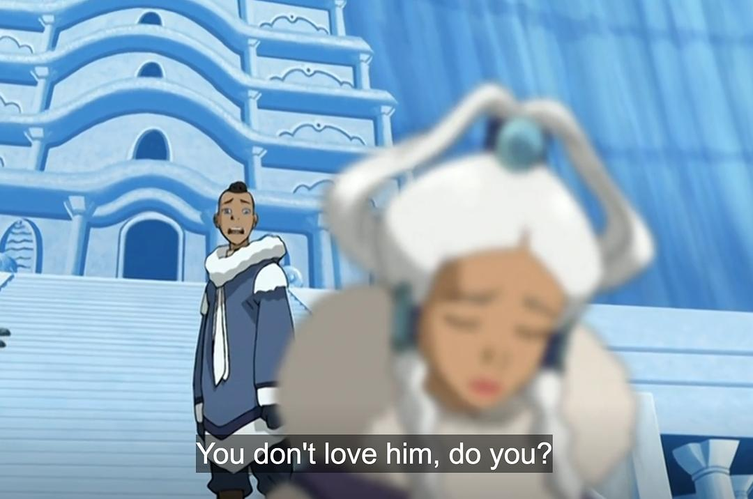 然而,当Sokka质问Yue你是否不爱你的未婚夫时,Yue回答:但我爱我的人民。此时我才意识到,Yue不只是一个不敢违背父母之命的公主,她思考的是儿女情长与家国天下的议题。