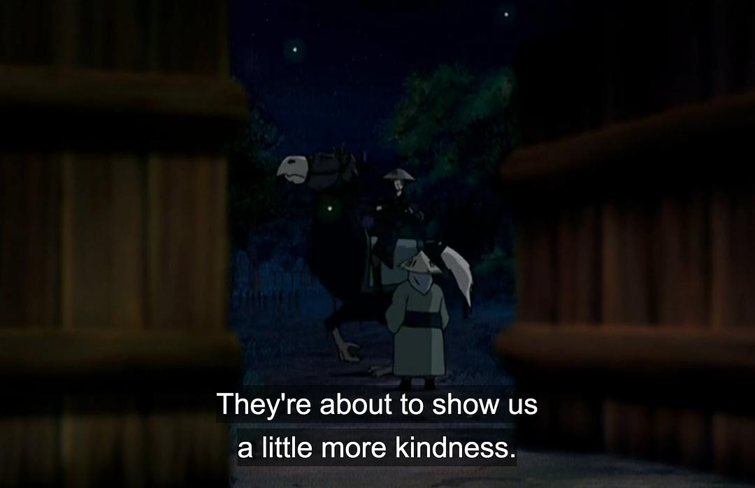 《被讨厌的勇气》的论述不好,上述几个观点我当时看的时候有些云里雾里。看了这集,才发现Katara就是课题分离、不追求认可、做对社会有用的人的最好的例子啊!她帮助别人,不是为了获得肯定;所以即使这些人一遍遍地让她失望,并没有影响她自己的课题,也即她的初心,所以她不曾气馁,也不曾放弃。