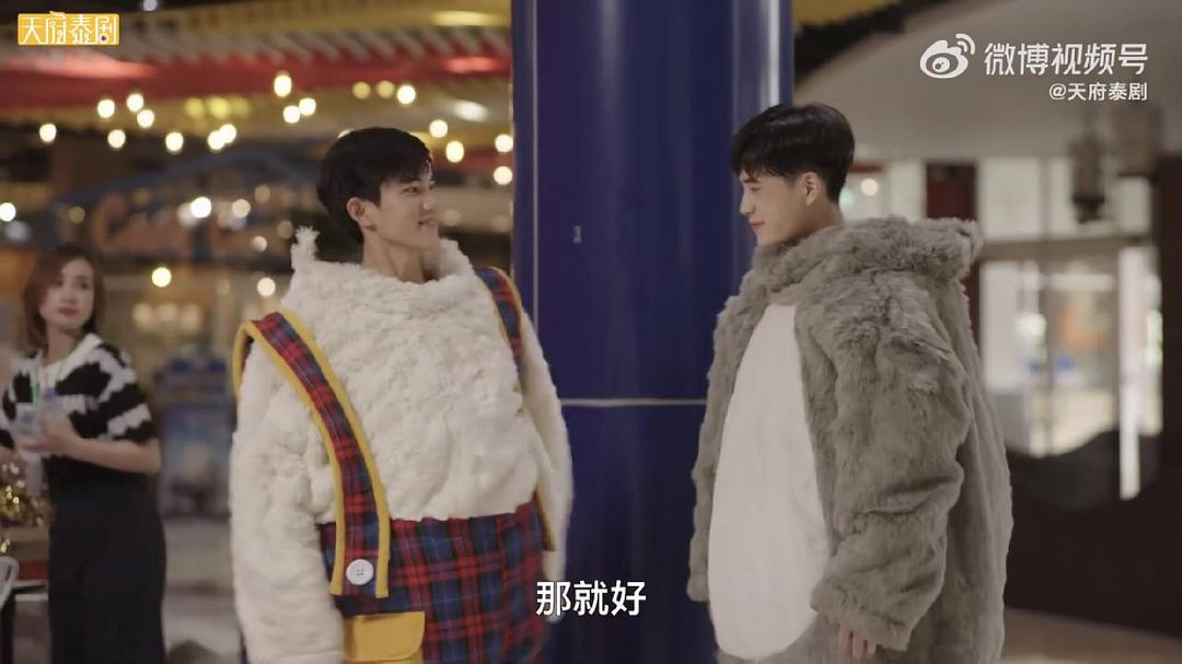 除此之外我还很喜欢店里的小卷毛,演员名字是Mark,原先是上过世界排名的羽毛球运动员,转行演戏居然也有点天赋,大概有些人就是干啥啥行。与其说他转行演戏,不如说他转行干了Geminifourth的爱情保镖,《我的会长男友》里我就瞄上他了,长相绝算不上常规意义上的好看,但丑帅丑帅的很有辨识度和时尚感,去海边那几场戏套着小黄鸭的游泳圈实在是太可爱了。可能人就是无法客观,人设讨喜长得又可爱,就忽略了演技青涩的部分。日后他好像要和二哥neo组cp了,质疑声还是有的,但我把话撂在这儿,你们就等着真香吧。