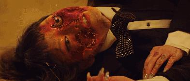 画面渐渐失控……但谁也想不到,画面不是变“黄”,而是变“红”。n碧伊轻轻吻完卷毛男后,对着他的脑门扎了两刀!nn大家拍手称快,不约而同拿起金杯,像恭候圣餐一样接起了血。