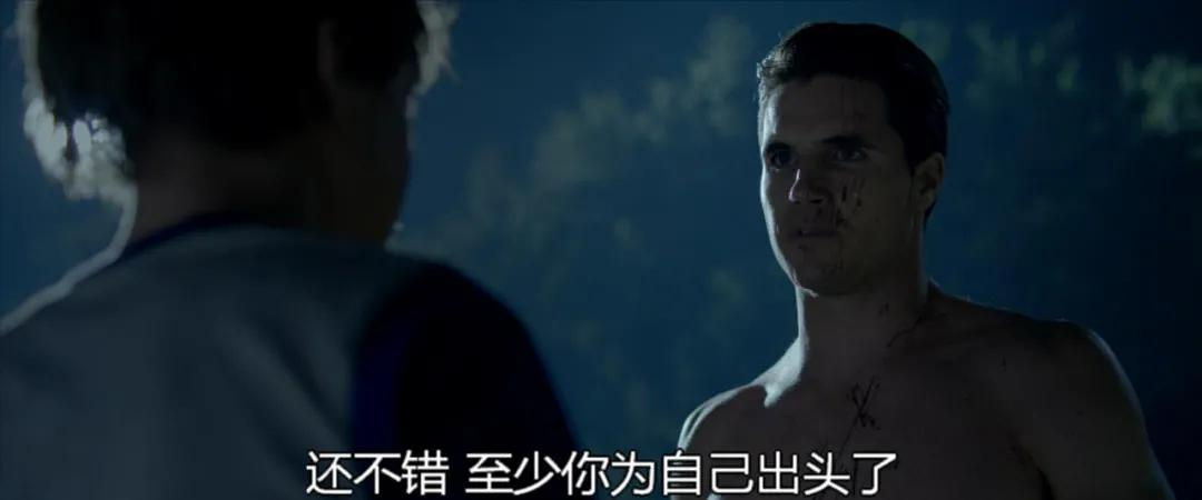 就在肌肉壮汉麦克斯要杀掉科尔的时候,平日中霸凌过科尔的孩子又来捣乱,麦克斯居然直接开始了“猛男教育”,画风突然温馨励志,上一秒还是杀人狂,下一秒就开始鼓励科尔进行反击。