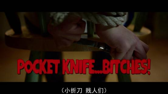比如,他们把小宅男绑起来时,小男孩手拿小折刀准备割开绳子逃跑。n