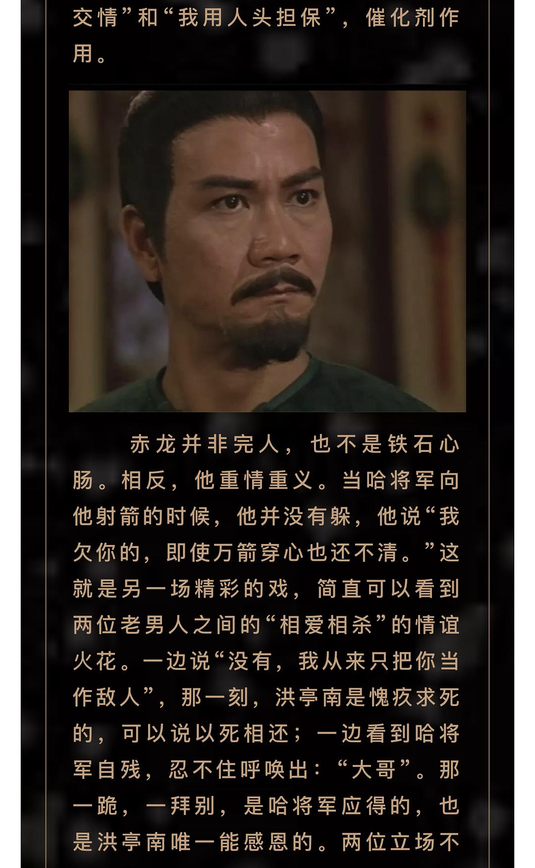洪熙官以民族大义斥责赤龙,说的赤龙也不得悚然动容,授之以棍法。