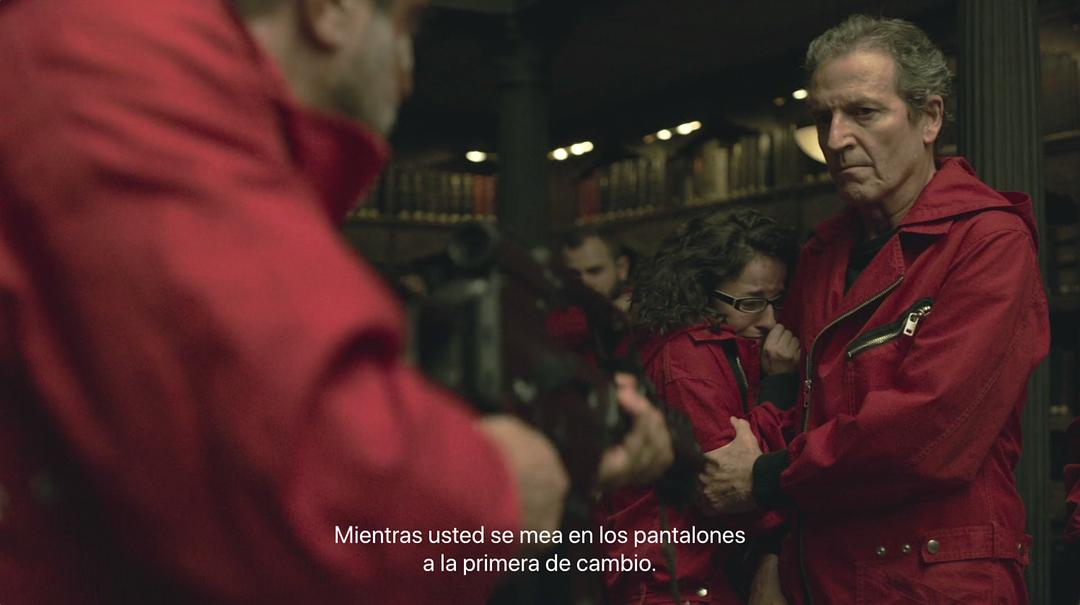因此这两位一个曾为猎人、现在沦为阶下囚,一个则是趾高气扬情绪信心满满、准备随时扣动扳机的女强人间的每一次较量都能扣人心弦。尽管她们博弈片段并不多,但其穿插于银行内部、警方及外部教授等几方对峙中,成功起到了连接、润滑与加热剧情温度的作用,基本还算是能令人满意的。