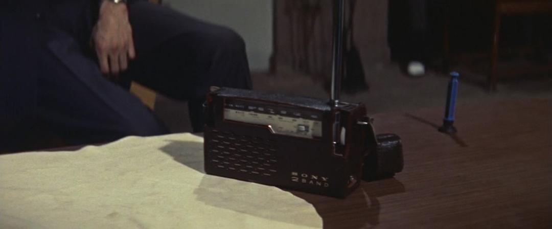 这是1958年刚推出的新款收音机,彼时生产这款收音机的企业刚刚由“东京通信工业”改名索尼,如今信徒无数的SONY logo,自然也是才出现不久。在1960年上映的本片中,SONY醒目地出现了多次,确实很有广告的感觉。