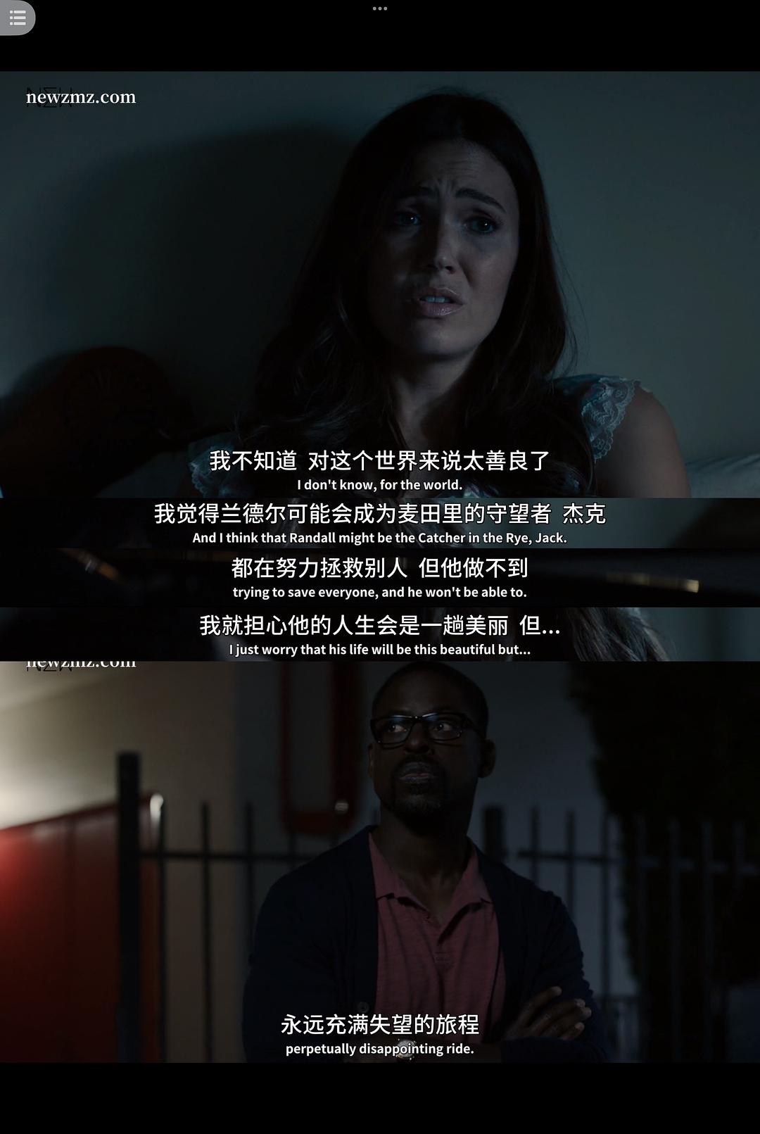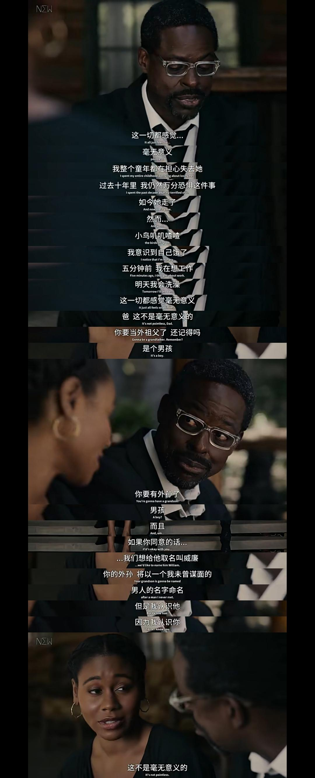 这集 Randall 和 Deja 的故事,会让我一直想起我的父母,在我从孩子到成人的转变过程中,父母当年是怎么面对的。我有印象我妈一天到晚会给我打很多电话问我行踪,而我很烦。我也记得有一年跨年我玩到很晚,我爸一直在客厅看电视等我。高中每周回一次家会和爸妈们说很多话,成年后仿佛越说越少。我们不再是黏在他们脚边的孩子,他们也可能不再记得哪一次是最后一次抱起我,哪一次是最后在床边看着我们入睡。