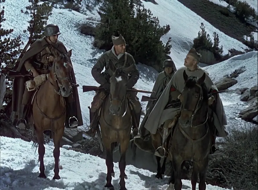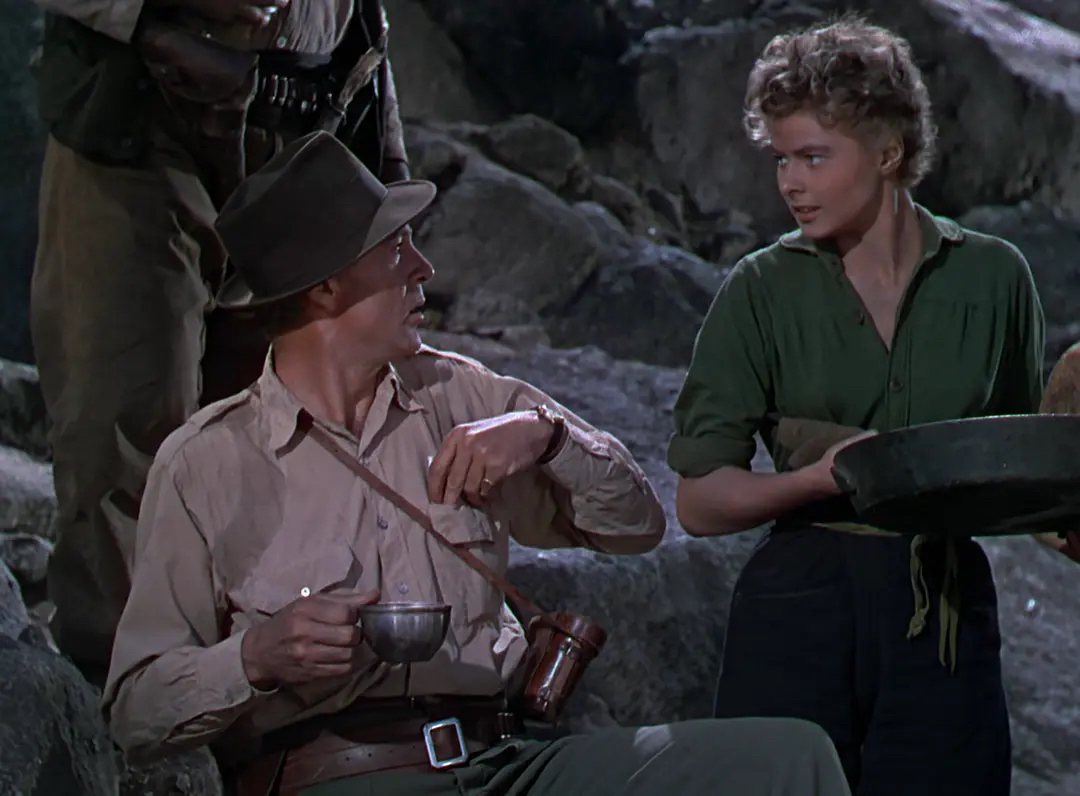 向导安瑟莫带着罗伯特来到铁桥附近,见到了游击队长巴布洛。罗伯特和玛丽亚第一次见面就互有好感,罗伯特惊诧在这个鸟不拉屎的荒郊野外,竟然有这么一个清新脱俗的女人出现,让他眼前一亮,而对玛丽亚来说,一个高大英俊男人的出现也让她内心为之一动,大概这就是缘分吧。不过他们两个人眉来眼去的热乎劲让队长巴布洛非常不满,心生妒忌,他摔了饭盒起身离去。