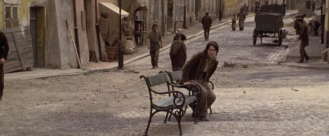 紧接着,搞笑剧情来了。冉阿让刚离开,珂赛特就看到了坐在马路中间椅子上偷窥的马吕斯(话说,小伙子,真的不是你搬了个椅子去偷窥的吗?为了美女连命都不要了,很容易被马车撞死哎……)。柯往那边走,马往这边走。下一幕,冉阿让突然出现,截住珂赛特,他们换了个方向走了……
