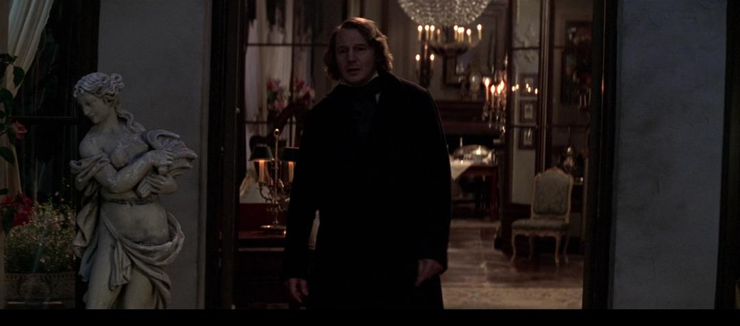 故事开场就很九十年代的英国片……蓝不拉几的色调,诡秘的配乐,一条小河——实话说这部片的摄影挺好看,还是在水准之上的——农民在田里劳作,冉阿让露宿街头,有个老太婆告诉他可以去哪里借宿。切入很快,镜头到了主教的餐桌上。两人探虚实的场景首先就让熟悉原著的人怀疑走错了片场: