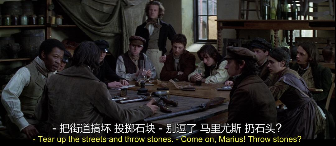 另一方面,沙威和手下在监视群众运动。ABC在街头演讲。猜一猜哪个是马吕斯,哪个是安灼拉,哪个是格朗泰尔。