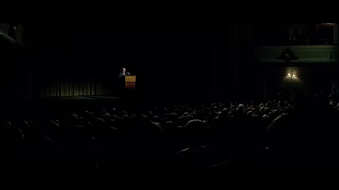 景别由之前的全景切到近景。此时暗示观众,台下的听众似乎已经对卡波特的新作建立起了一定的认可。
