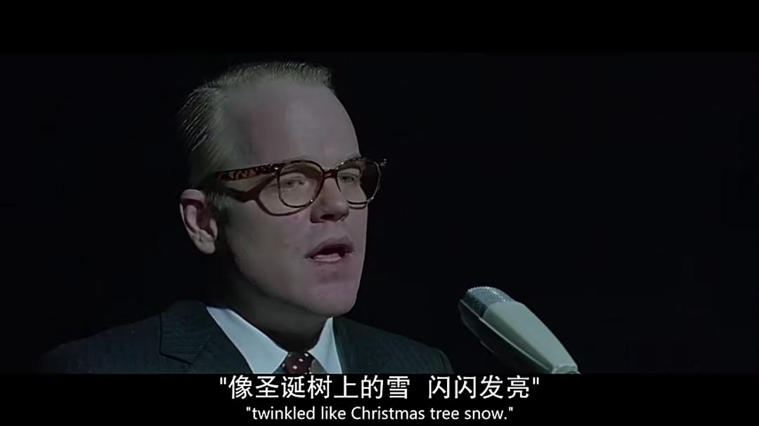 与开场相同的机位,更近的景别。卡波特得到了他想要的