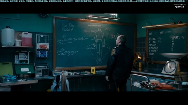 这部片子看完一遍,似乎也就是一部中规中矩的恐怖片。但看了其他网友的分析,二刷三刷之后,发现片中隐藏了很多细节。nn这些细节包括墙上钟表的时间、黑板上的文字和照片、以及影片最开头的奇怪画面和影片结尾黑人司机那几句莫名其妙的台词(包括一句被歌声掩盖难以听清的)。nn首先自然是解剖女尸前后镜头给墙上钟表的特写。nn解剖前儿子看了一眼时间,因为他想早点完事就和女友约会,时间是9:45。