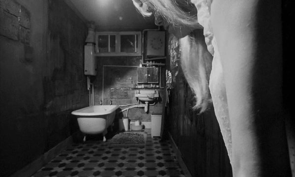 之后,Carol的被害妄想症愈发严重,以至于她拿起金属烛台乘男友不备残忍地将其砸死。这段也拍得十分精彩。男友破门而入后,对门的妇人牵着狗正好经过,影片在这里唯一一次采用了景深拍摄。当男友关门之际,瞬间切换到男友的主观镜头,然后伴随着镜头的猛烈晃动,男友轰然倒地,鲜血缓慢渗出静谧流淌。尸体放入浴缸中口吐鲜血的画面也足以让人侧目。Carol杀死男友后陷入了短暂的癫狂,她故作镇静地哼起小曲编织毛衣。这时幻想中的恶魔再次出现强奸了她。