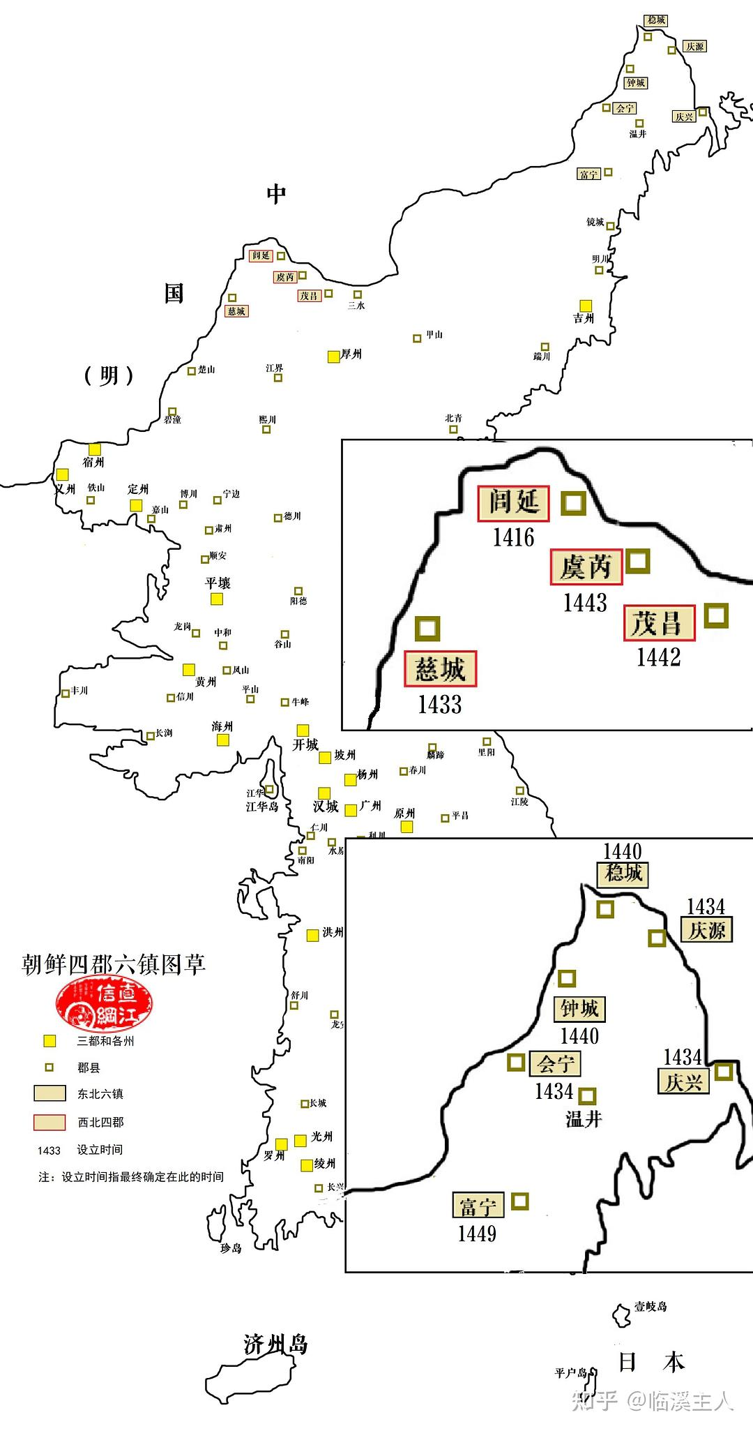 西北四郡与图们江六镇,图示如下——